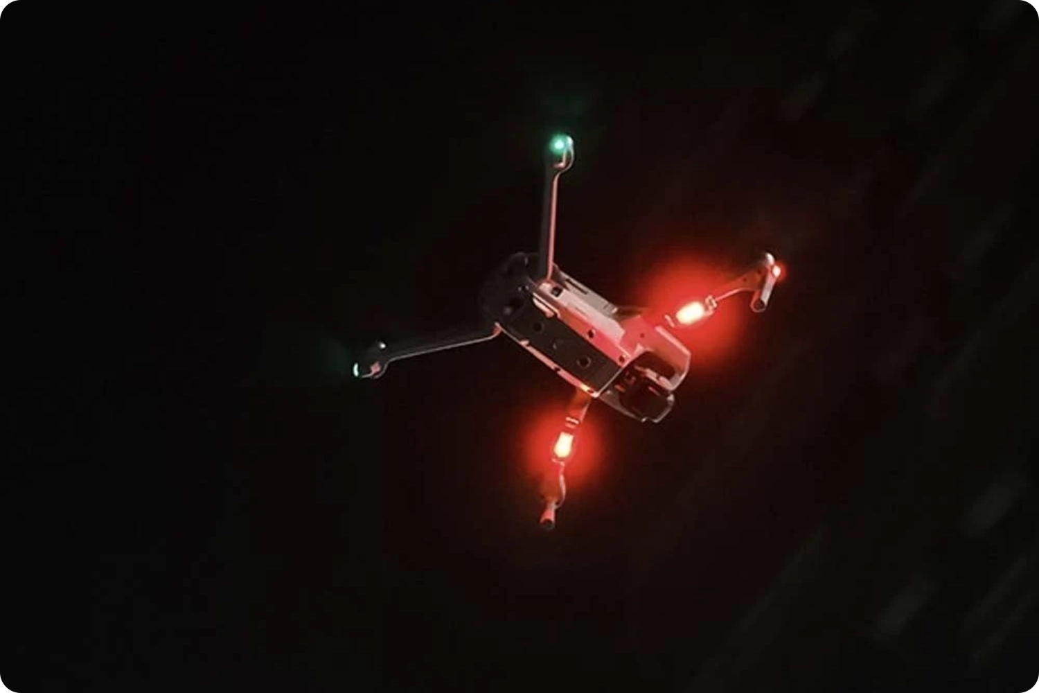 W krajach objętych regulacjami EASA (w tym Polska), loty w nocy mogą wymagać specjalnych uprawnień w przypadku latania w kategorii SPECIFIC. Dlatego przed lotem warto sprawdzić aktualne przepisy w aplikacji DroneRadar oraz Geo-Zone DJI, aby upewnić się, że przestrzeń powietrzna jest dostępna do lotów nocnych.