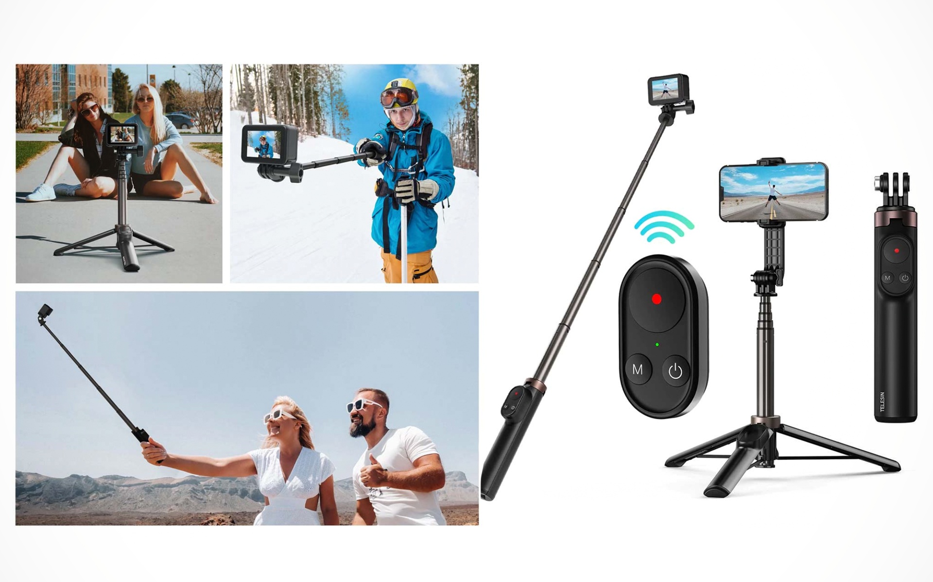 Kijek do selfie zawsze się przydaje, więc tym razem też zabieramy go ze sobą! W naszym sklepie znajdziecie kijek, który jest połączeniem statywu, selfie sticka oraz pilota. Zrobicie nim piękne selfie na tle widoków, nagracie timelapsy czy vlogi. A dzięki funkcji małego pilota mamy możliwość zdalnego włączania nagrywania czy robienia zdjęć.