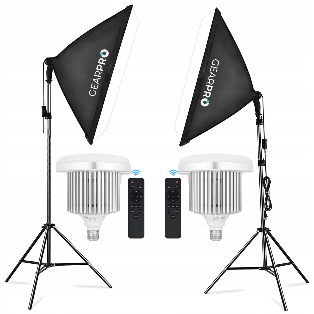 ✔️ Oświetlenie do fotografii do podstawa. Mocne, naturalne światło zapewnią żarówki marki GearPro o mocy 85W każda a temperatura barwowa wynosi 3600-5500K.