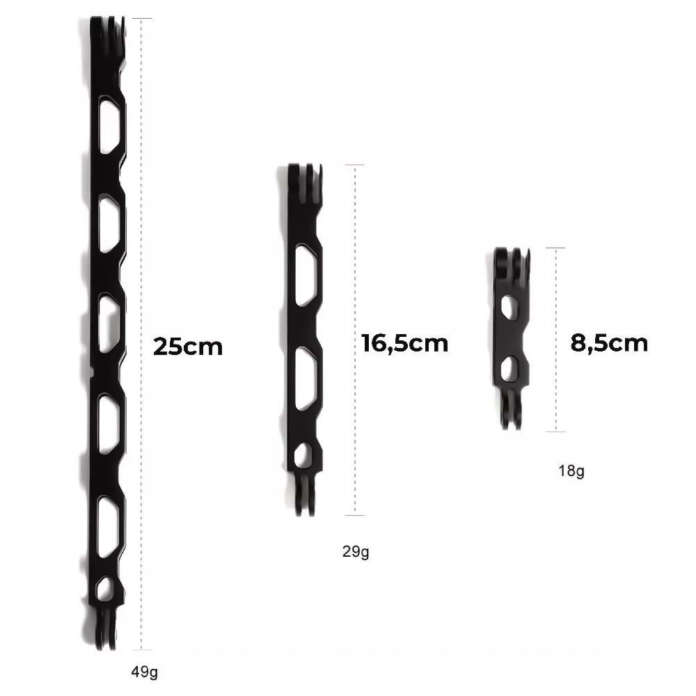 ✔️ Zestaw 3 łączników prostych z aluminium6,5cm, 16,5cm i 25cm do kamer sportowych