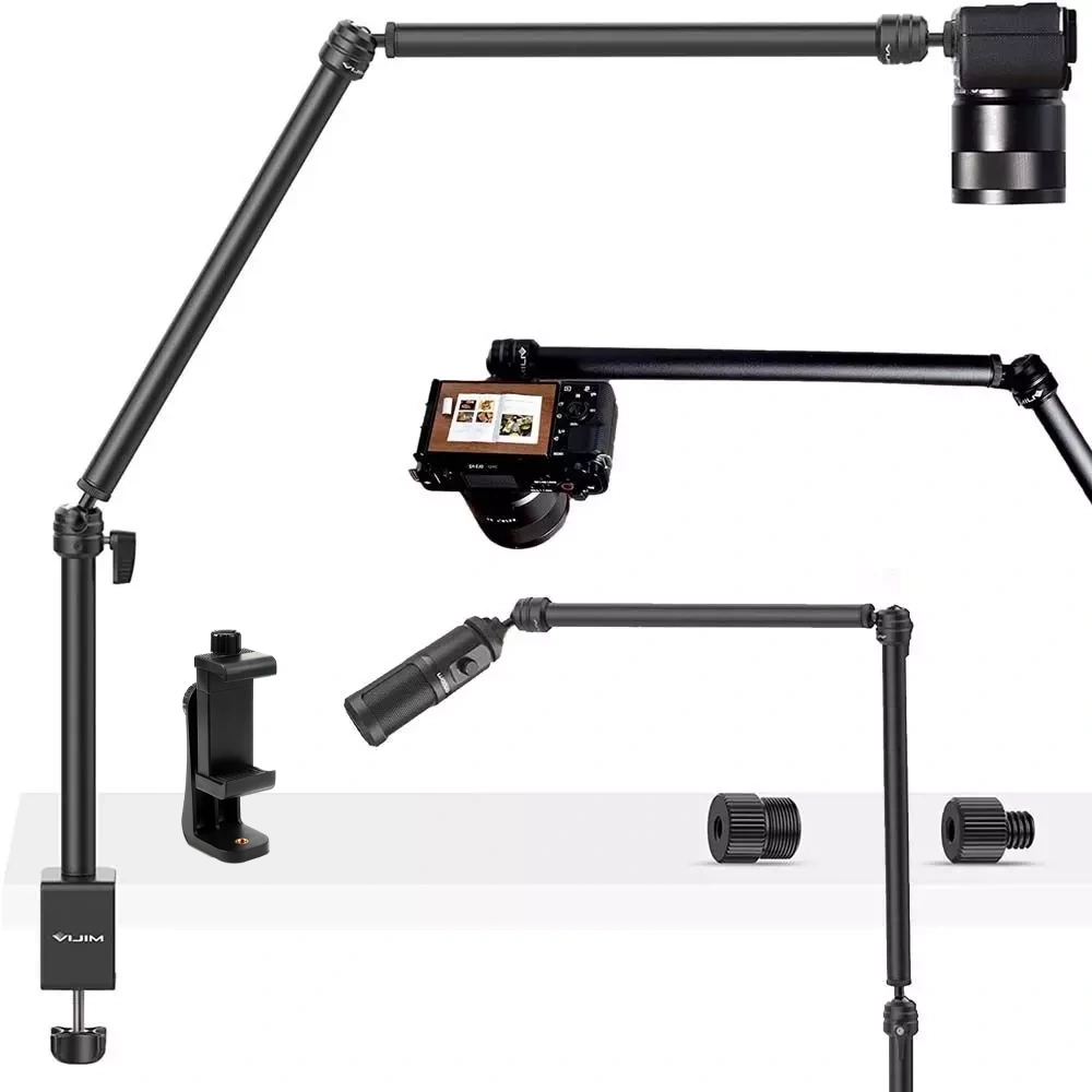 Uniwersalny statyw dzięki któremu umieścisz lampę, aparat, mikrofon, lub oświetlenie studyjne na blacie biurka.  Długie ramię pozwala ustawić sprzęt jak ci wygodnie. Możesz na nim umieścić aparat np. obiektywem w dół albo ponad swoimi notatkami czy ekranem komputera.