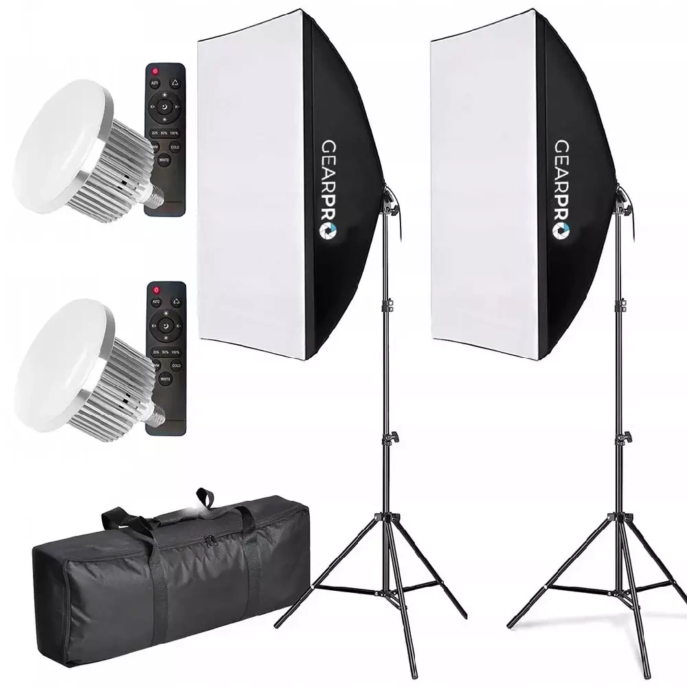 ✔️ Oświetlenie do fotografii do podstawa. Mocne, naturalne światło zapewnią żarówki marki GearPro o mocy 85W każda a temperatura barwowa wynosi 3600-5500K.
