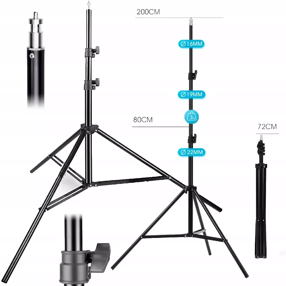 ✔️ Stabilny statyw doskonale utrzymuje softbox, a dzięki jego teleskopowo regulowanej wysokości od 72 cm do 2 m można użyć lampy zarówno na potrzeby fotografii portretowej, jak i fotografii drobnych przedmiotów.
