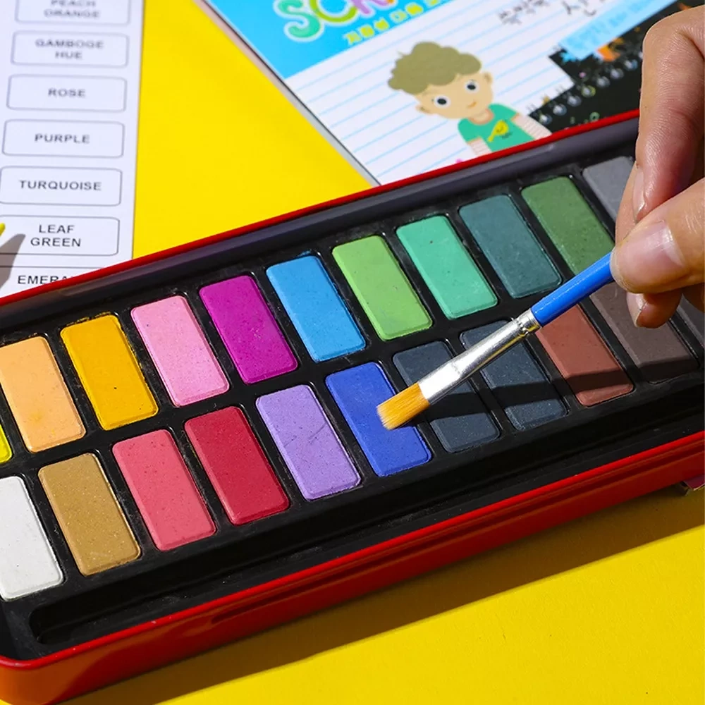 Farby Akwarelowe Wodne w Kostkach Akwarele 24 Kolory Pędzelek Etui