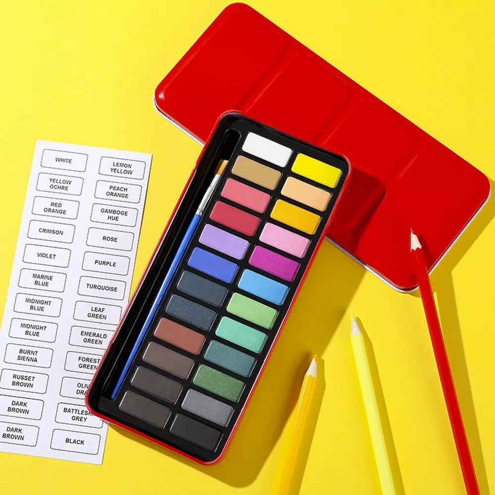 ☝️ Zestaw Farb Wodnych 24 Kolory w Metalowym Etui