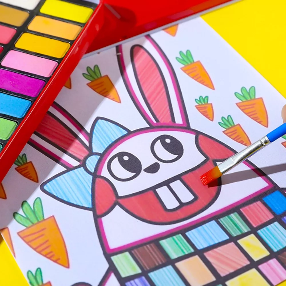 ✍️ Zawartość zestawu: 24 farby wodne, 1 pędzelek, arkusz z nazwami kolorów