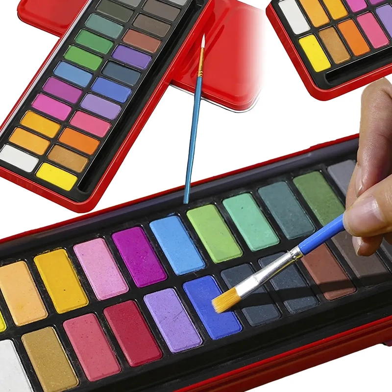 ✍️ Zestaw farb wodnych składa się z 24 intensywnych kolorów, które są doskonałe zarówno do malowania na papierze, jak i innych powierzchniach artystycznych.