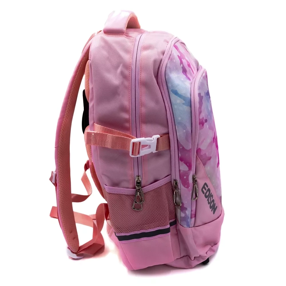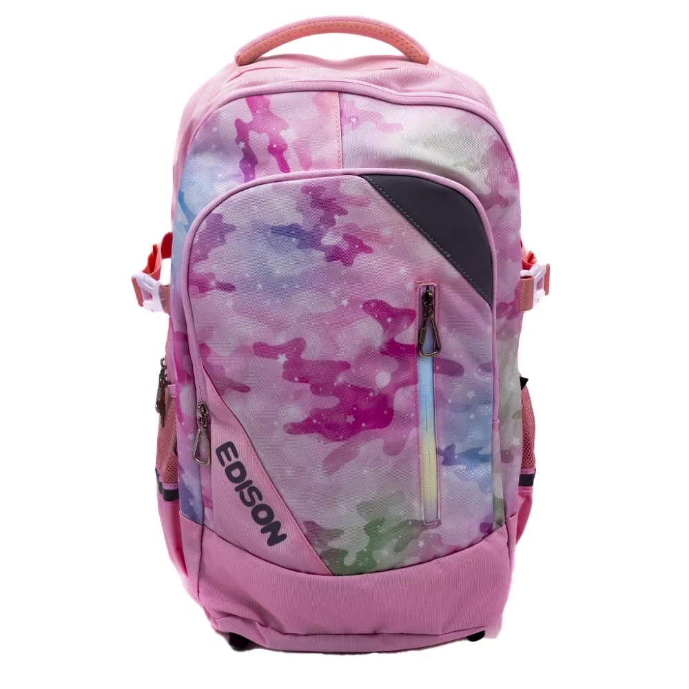 ✍️ Plecak szkolny "Różowy Edison Moro" to stylowy i praktyczny plecak, który doskonale sprawdzi się zarówno podczas codziennych zajęć szkolnych, jak i na wycieczkach.