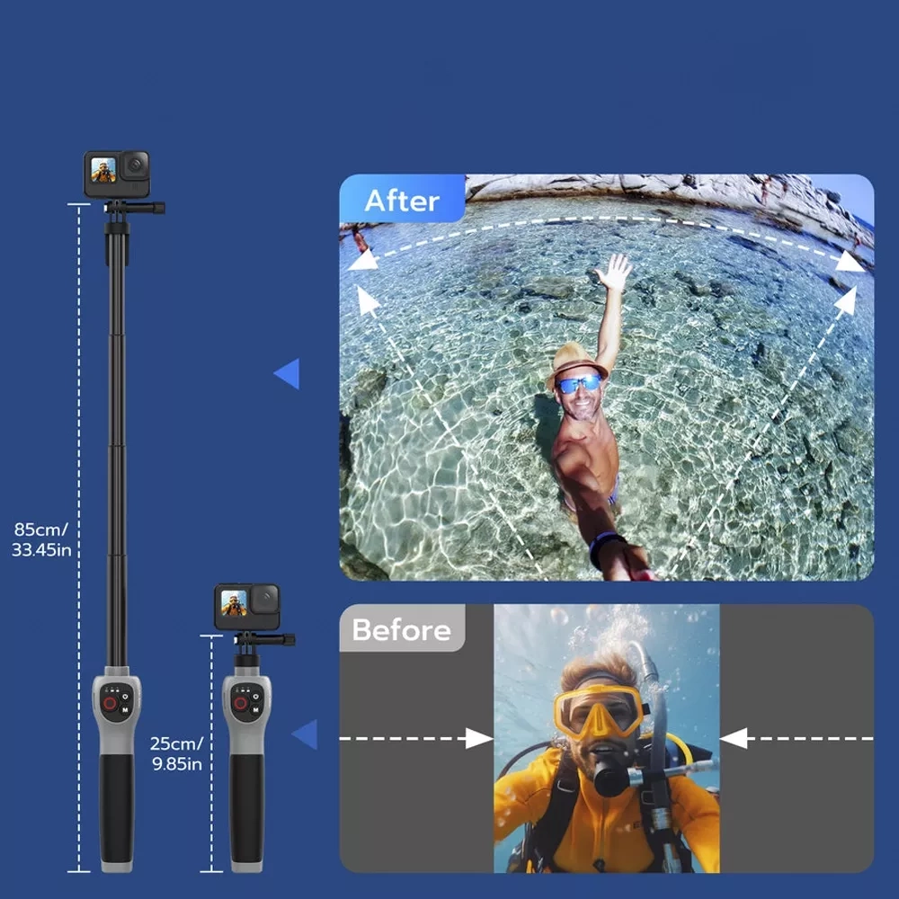 ✔️ DŁUGOŚĆ 85 CM: Optymalna długość sticka pozwala na uchwycenie szerokich, panoramicznych ujęć pod wodą, co czyni Twoje zdjęcia bardziej imponującymi.