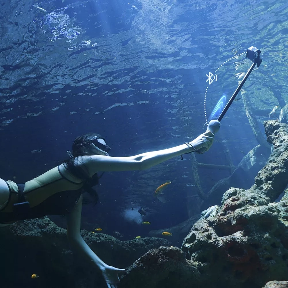 ✔️ ZDALNE STEROWANIE POD WODĄ: Pierwszy na rynku selfie stick umożliwiający pełne sterowanie kamerą pod wodą, co pozwala na robienie zdjęć i zmienianie trybów bez konieczności wynurzania się.