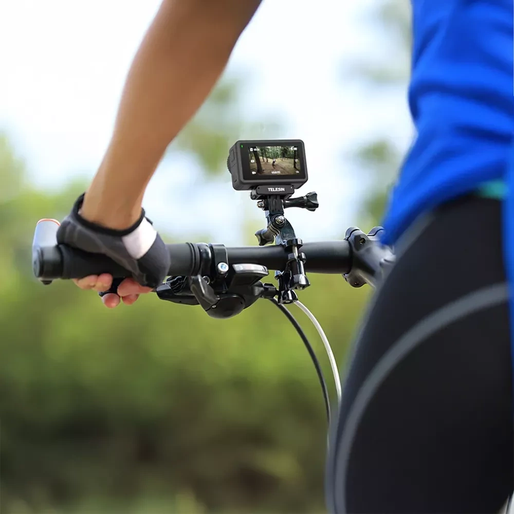 ✔️ Uniwersalny system typu GoPro – Uchwyt jest kompatybilny ze wszystkimi akcesoriami GoPro, umożliwiając montaż na statywach, monopodach, uchwytach i kijach selfie.
