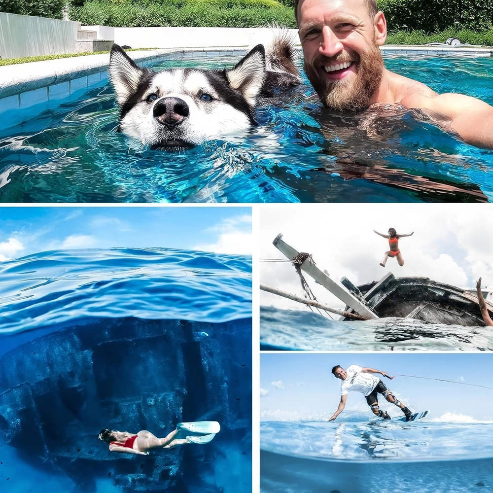 ✔️ Pozwala na nagrania z perspektywy linii wody, uchwytując jednocześnie to, co pod i nad powierzchnią.