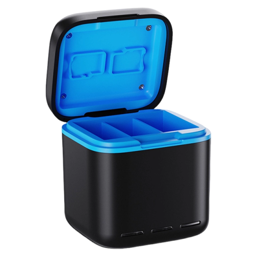 ✔️ Szybka ładowarka marki Telesin pozwala na ładowanie aż do trzech baterii jednocześnie. Wbudowany chip dobiera odpowiednie parametry ładowania i wydłuża żywotność akumulatorów. Posiada też diody LED wskazujące stan naładowania.