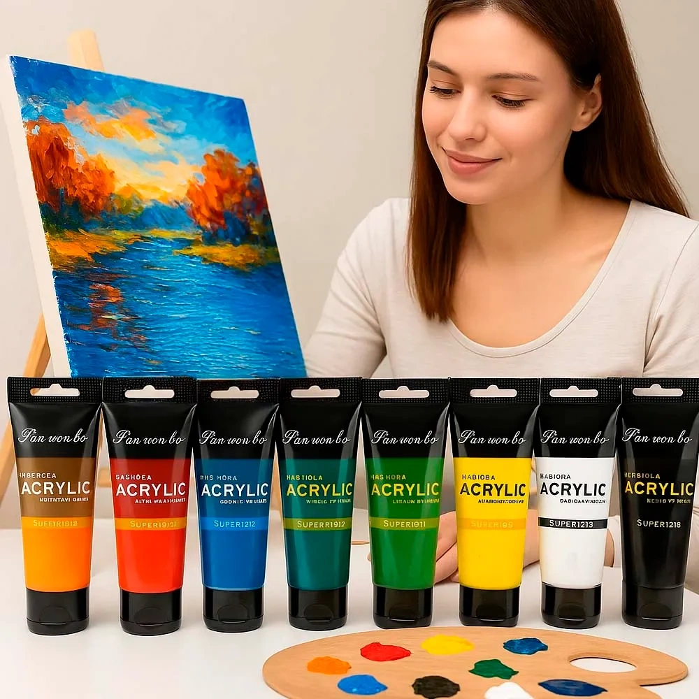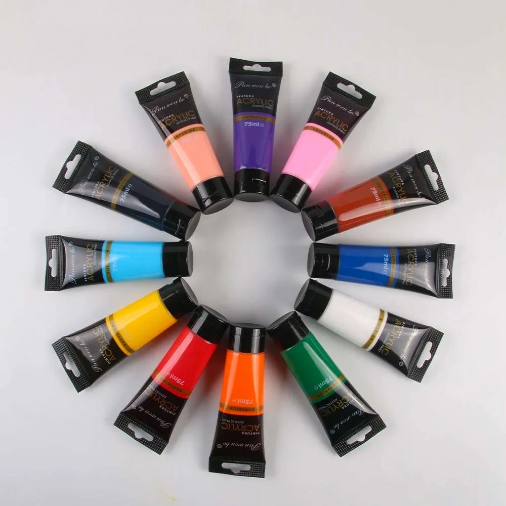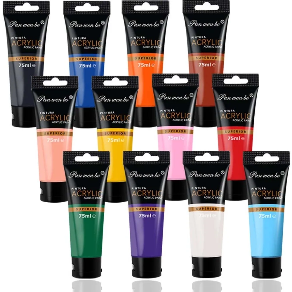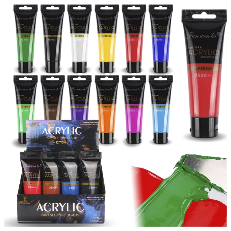 ☝️ Zestaw Farb Akrylowych Pan Wen Bo 12x75ml – Profesjonalne Kolory w Dużych Tubkach