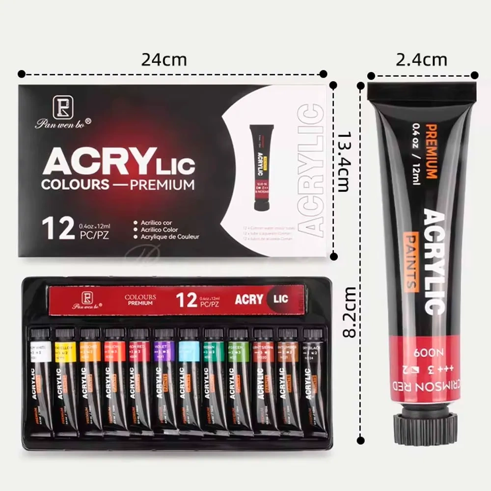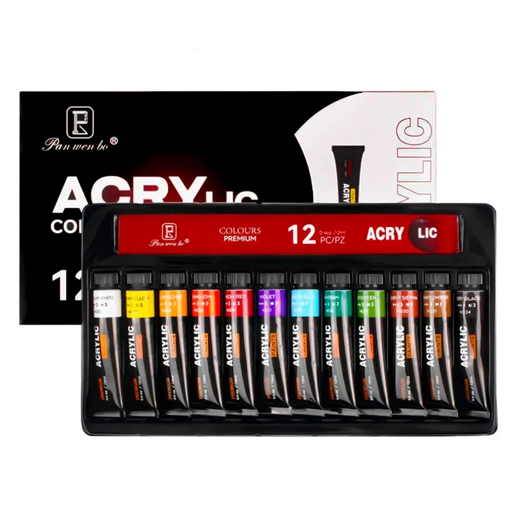 ☝️ Zestaw Farb Akrylowych Pan Wen Bo 12x12ml – Klasyczne Kolory dla Artystów