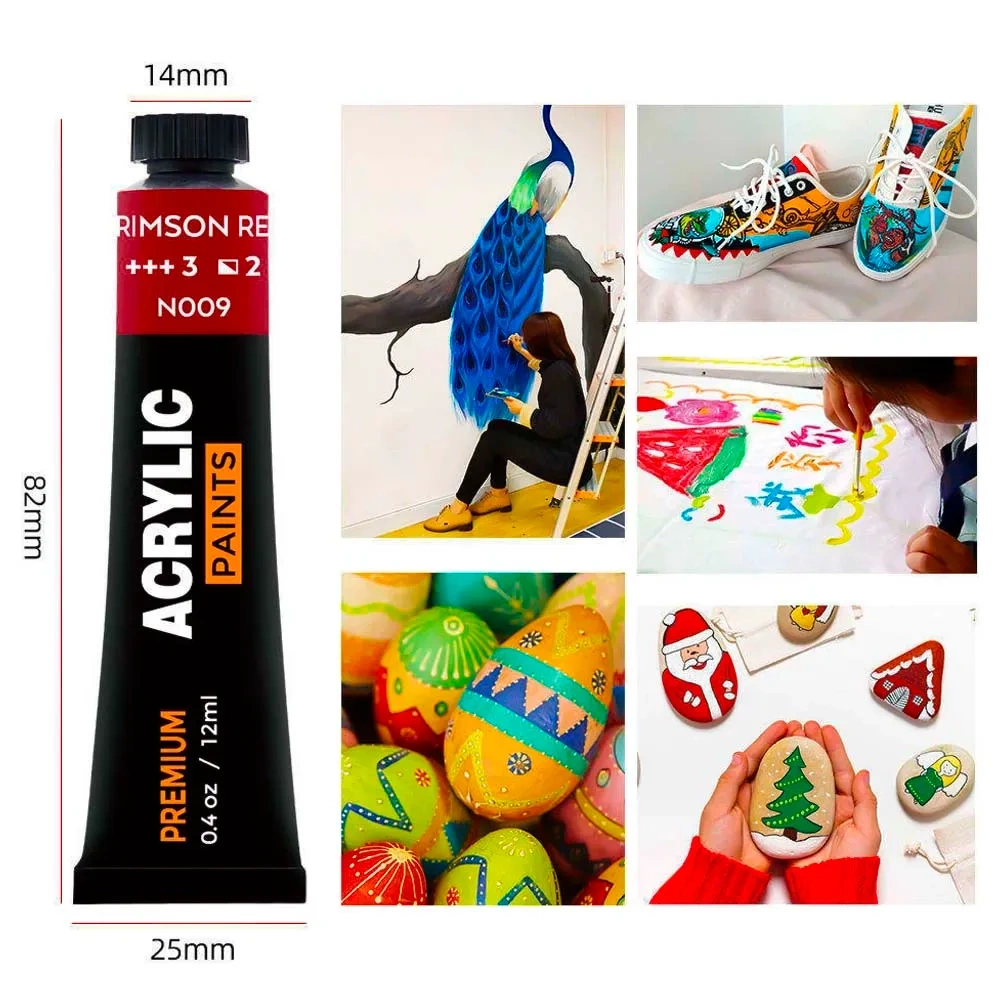 Farby Akrylowe Malarskie 12x12ml Zestaw Farb Akrylowych w Tubkach