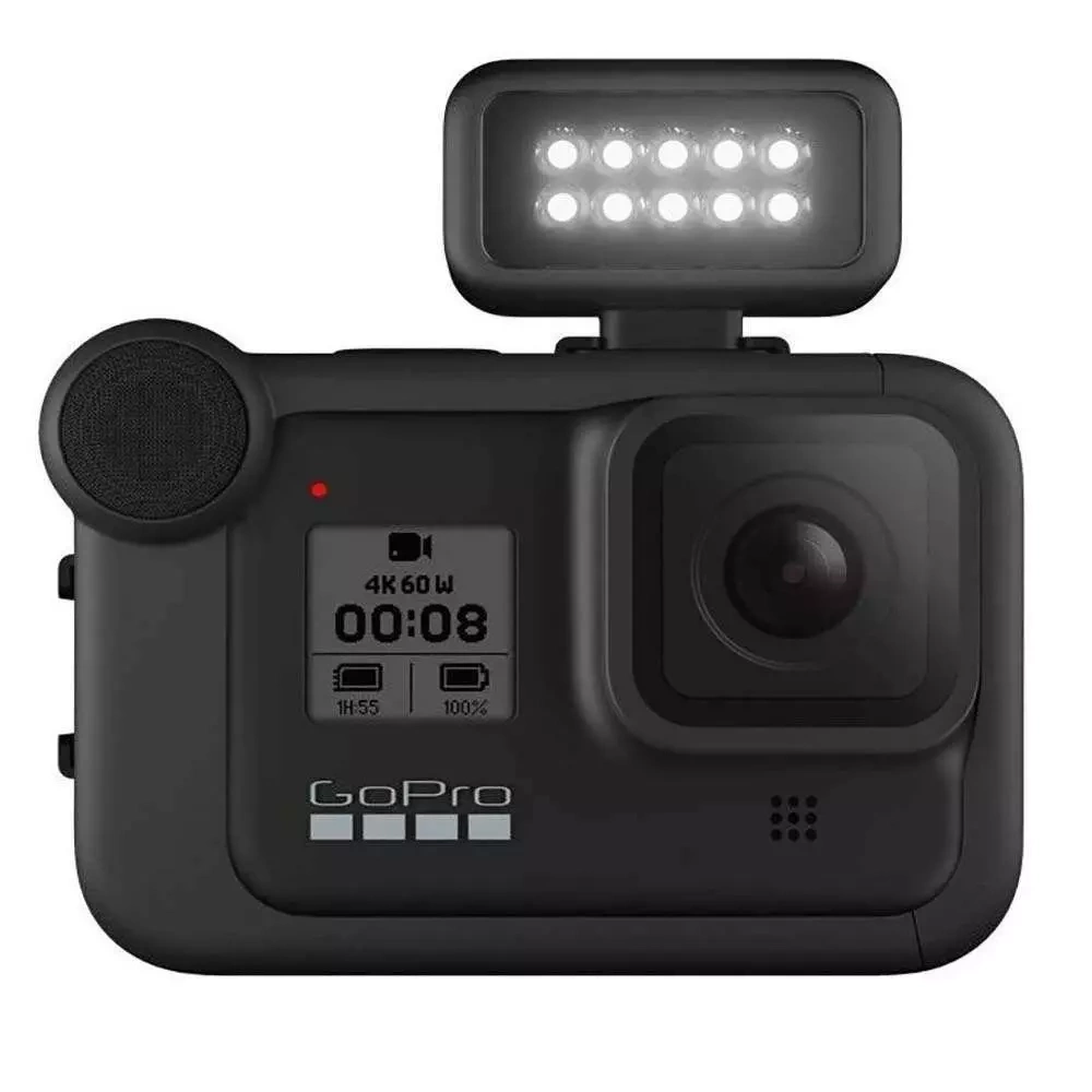 ✔️Kamera sportowa GoPro Hero 8 Black oferuje system modułowych akcesoriów, które poszerzają jej funkcjonalność. Należy do nich m.in. Light Mode, który stanowi bardzo mocne oświetlenie LED. Jest to niezwykle przydatne akcesorium zarówno w trakcie filmowania, jak i fotografowania. Light Mode oferuje szerokie i zrównoważone oświetlenie.